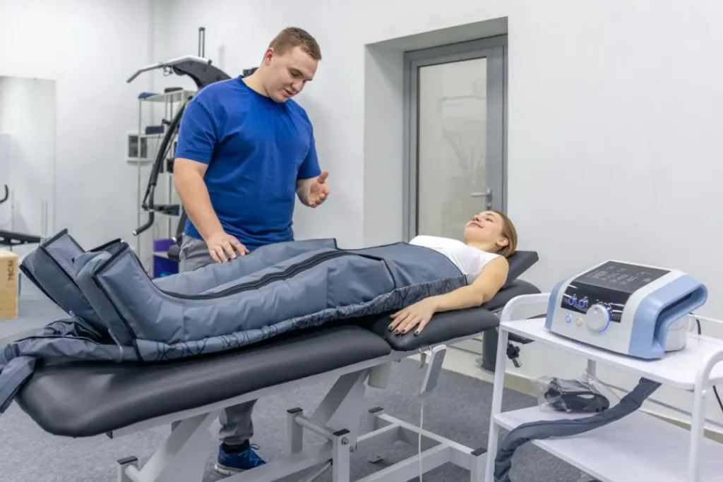 The LymphPro system uses advanced pneumatic chambers that inflate and deflate sequentially, creating a wave-like massage effect.